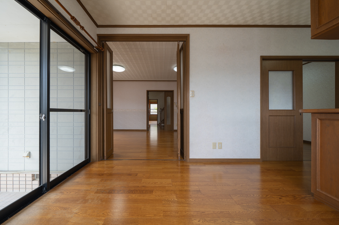 大きな玄関ドアを開けると広い玄関からリビング~ダイニングに引き込まれていきます。各部屋も大きいので、2世帯住宅などにも対応可能です。