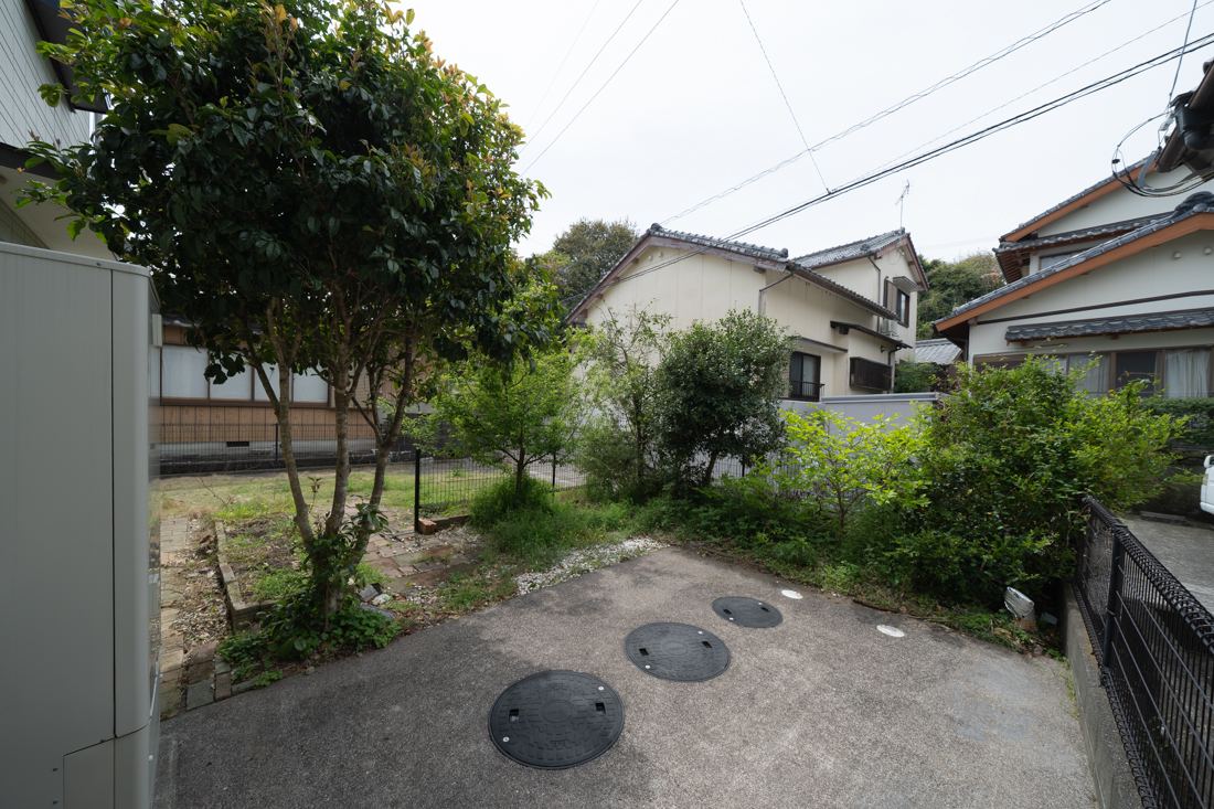 東面にはガレージ2台分をゆったり確保、シャッターも付いているので大切な愛車を守ってくれます。西側にも駐車スペースや庭のご用意がありますので、海から上がった夕方から仲間と楽しく集まって出来る居場所になりそうなロケーション。