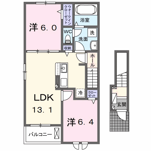 | 間取り | 2LDK (LDK13.1・洋6.4・洋6) |