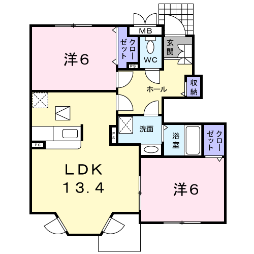 | 間取り | 2DK (LDK13.4・洋6・洋6) |