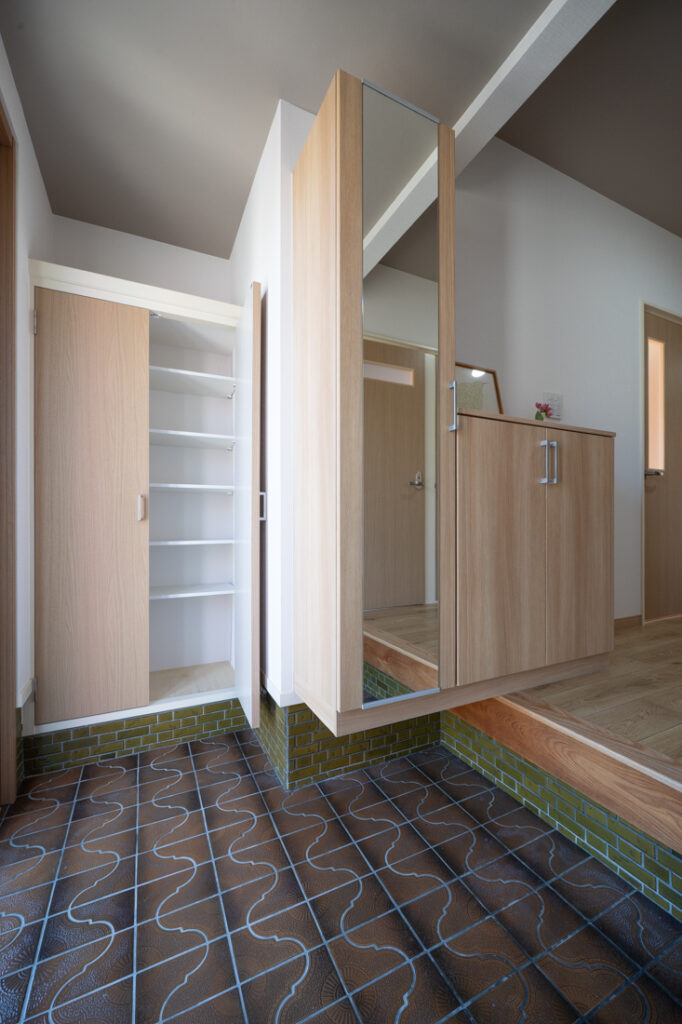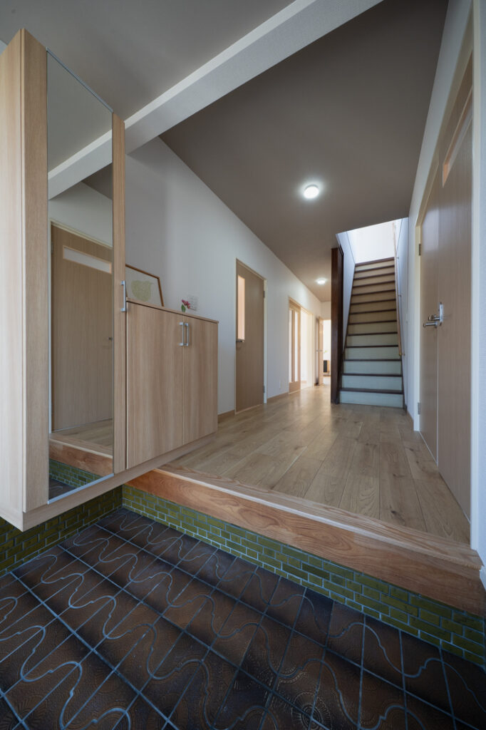 玄関は東側に設けており、朝日を取り入れた爽やかに一日がスタート。