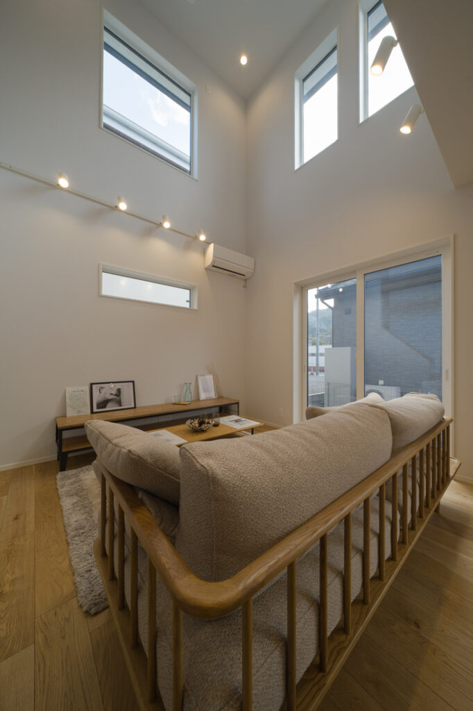 ソファに座って見上げた先に、すっと抜ける天井の高さ。