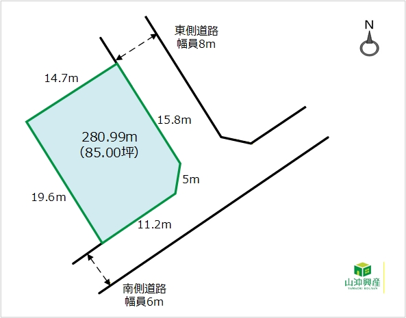 | 接道状況 | 東8m 公道 南6m 公道 |