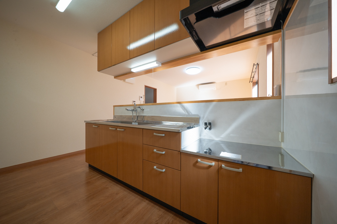 1階のLDKは14帖。対面キッチンからリビング全体を見渡せる間取りなので、お料理をしながら会話を楽しむこともできます。