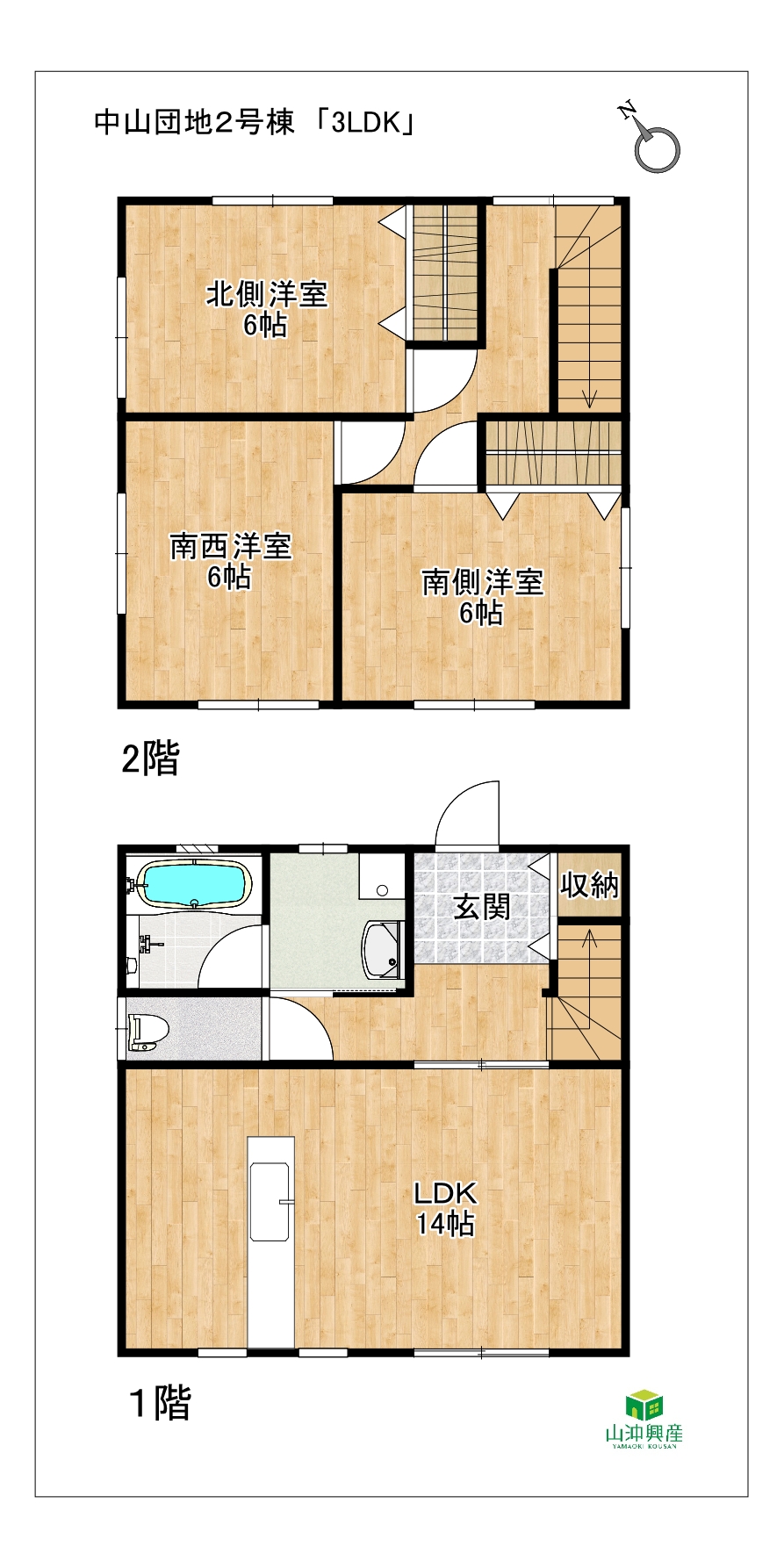 | 間取り | 3LDK (1階 LDK14 2階 洋6・洋6・洋6) |
